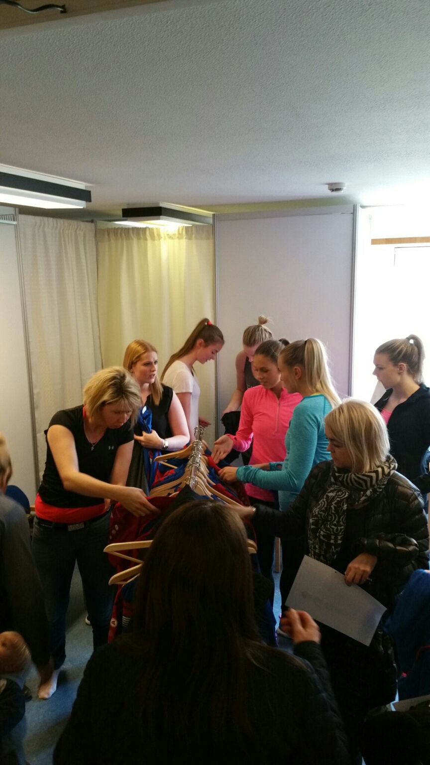Áður en formleg dagskrá fundarins hófst var þátttakendum gefinn kostur á að máta fatnað frá Jako sem þeir munu klæðast meðan á leikunum stendur.