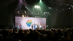 Þjóðirnar gengu fylktu liði inn í salinn ein af annarri og var það fyrirliði íslenska landsliðsins í körfuknattleik, Hlynur Bæringsson, sem fór fyrir íslenska hópnum sem fánaberi.